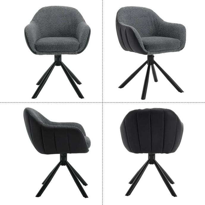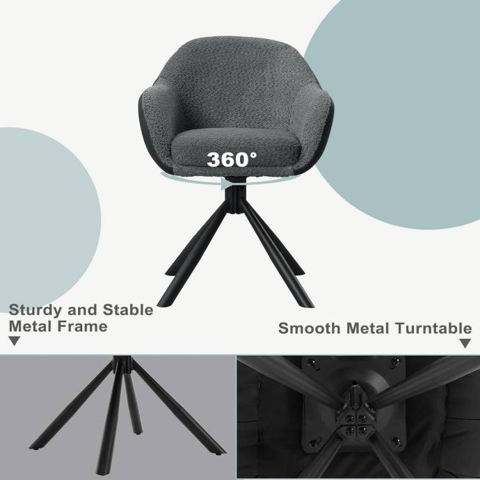 Jedna okretna stolica s chenille tkaninom, metalnim nogama i naslonima za ruke, idealna za blagovaonicu, dnevni boravak, ured ili spavaću sobu. Stolica se može okretati 360° što olakšava korištenje i povećava udobnost.