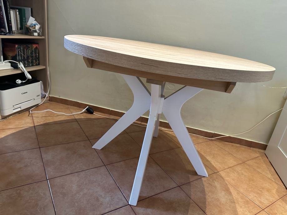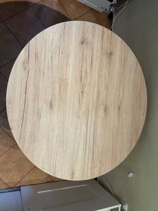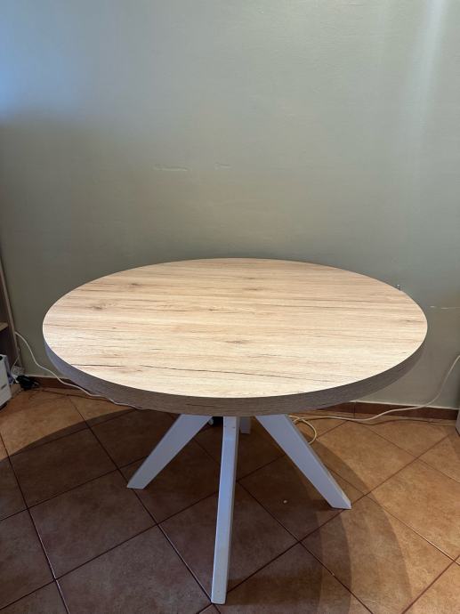 Stol je okruglog oblika, promjera 110 cm, a po potrebi se jednostavno razvlači na 150 cm, što ga čini idealnim za 4 do 6 osoba.