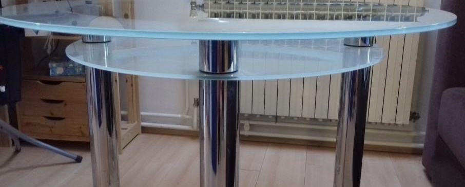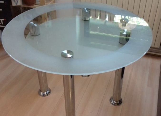 Okrugli stakleni stol s kromiranim nogama