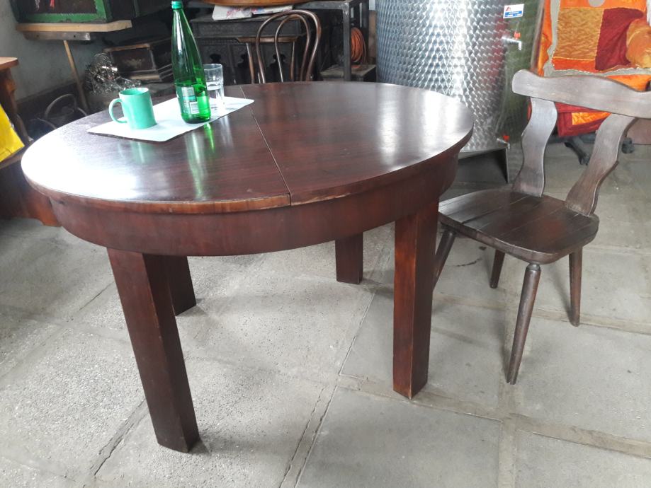Ovalni stol na razvlacenje dimenzije plohe 120×100,visina 80 cm.Mjere 120×100 su mjere kad je stol skupljen.