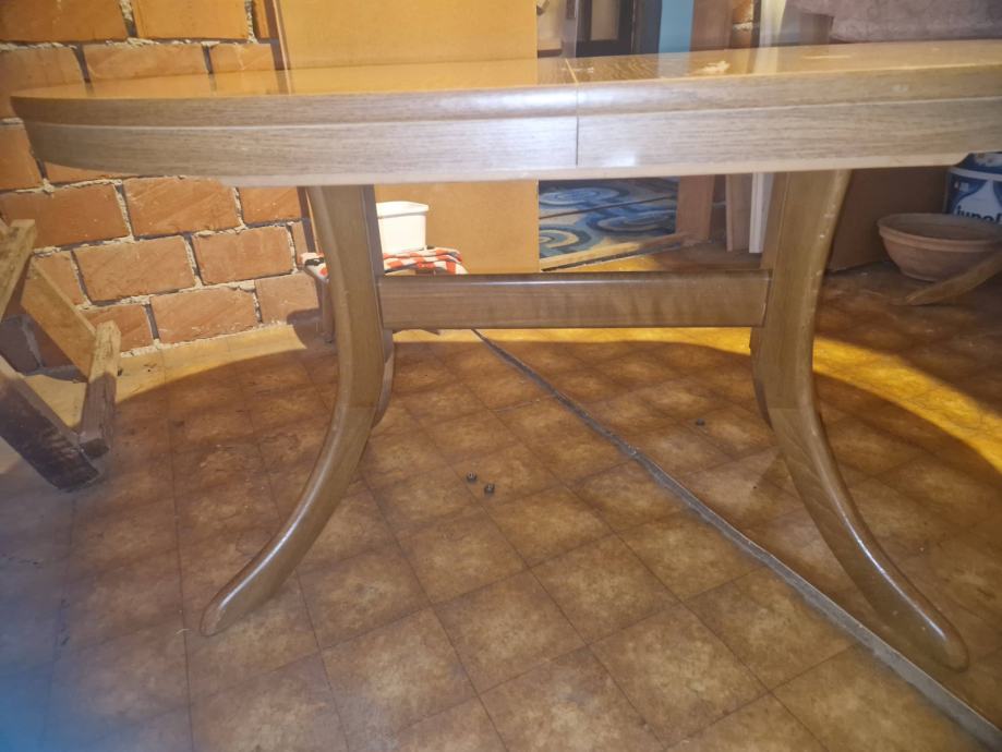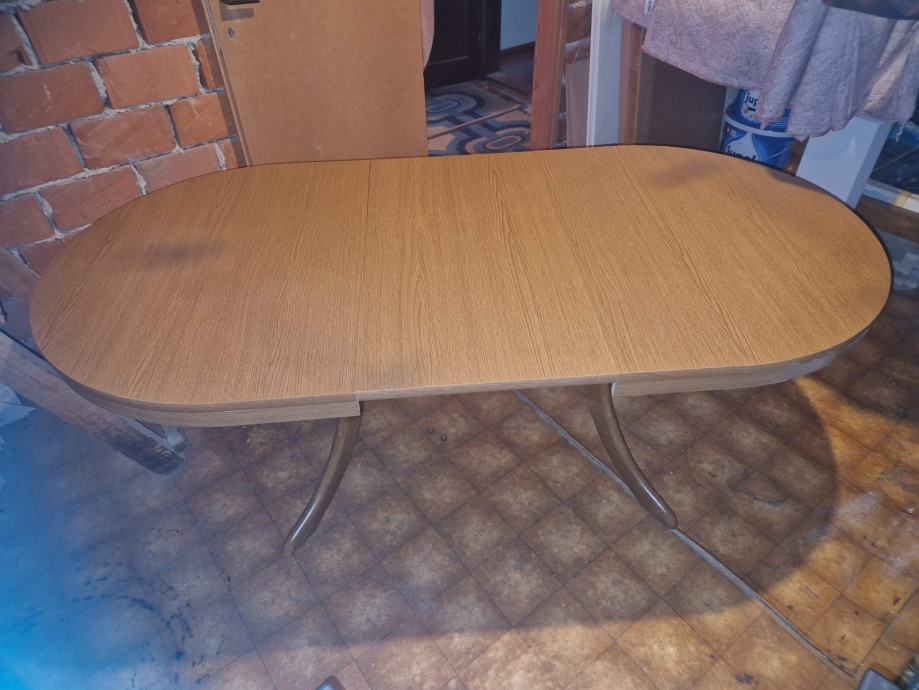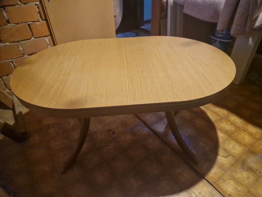 Ovalni stol na razvlačenje, dužina stola 135 cm, razvlačenjem se dobije dužina 180 cm, širina 90 cm i visina 72 cm.
