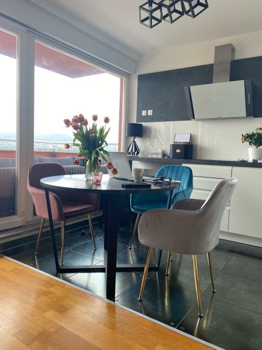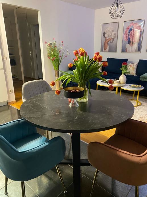 Prodajem set od tri plišane stolice u različitim bojama – siva, tirkizno plava, starinska ružičasta . Stolice su modernog dizajna s mekim, baršunastim presvlakom i nogicama u zlatnoj boji. Lijepo izgledaju zajedno kao set, ali mogu se koristiti i zasebno. Pogodne su za blagovaonicu ili kuhinju.