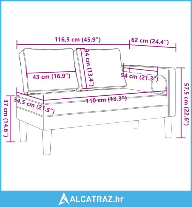 - Dimenzije jastuka (valjkastog): Φ 11 x 54 cm (Promjer x D)