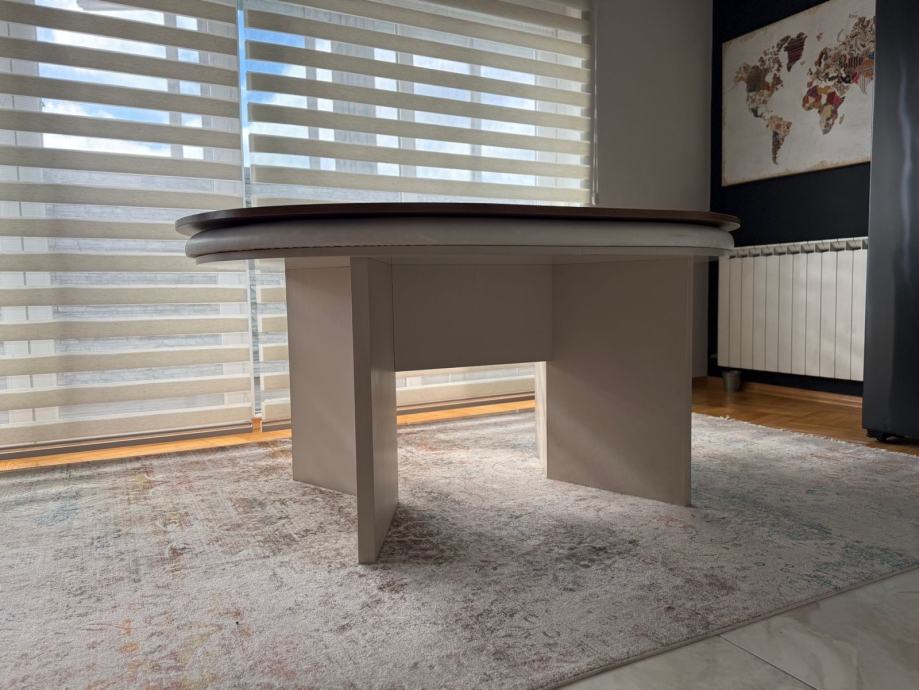 Prodaje se stol rađen po mjeri koji ima funkciju blagavaonskog stola i stola za poker. Gornja ploča je izrađena od iverala te se lako skida.Korišten je isključivo kao blagavaonski stol, dio za poker je jako dobro očuvan. Dimencije su 120x160x78.