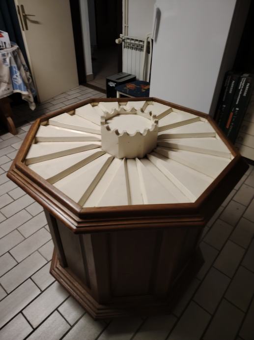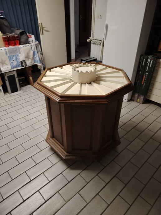 Prodajem stol za vino drveni sa tockovima za transport u dobrom stanju