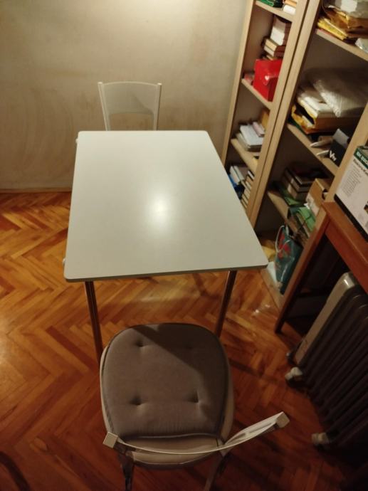 Povoljno prodajem stol sa dvije stolice kao sa slike bez ikakvih oštećenja vrlo malo korišten, dimenzije stola su 90x60.