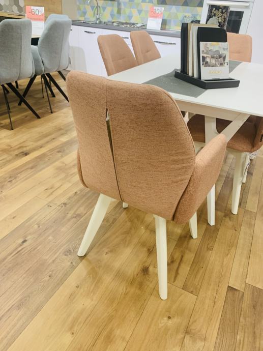Prodajemo nove ne korištene stolice kupljene u Primi - boja lososa sa bijelim nogama.