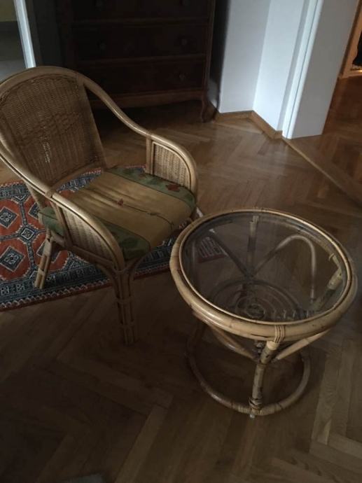 Povoljno, stolac i okrugli stolić od ratana. Idealan za ulaz, hodnik, spavaću sobu ili balkon.