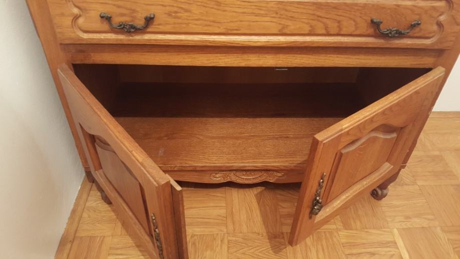 Star oko 25g. Izrađen po naruđbi. Drveni. Ima manja oštećenja. Visina 106 cm, dužina 90,5 cm i širina 42 cm.