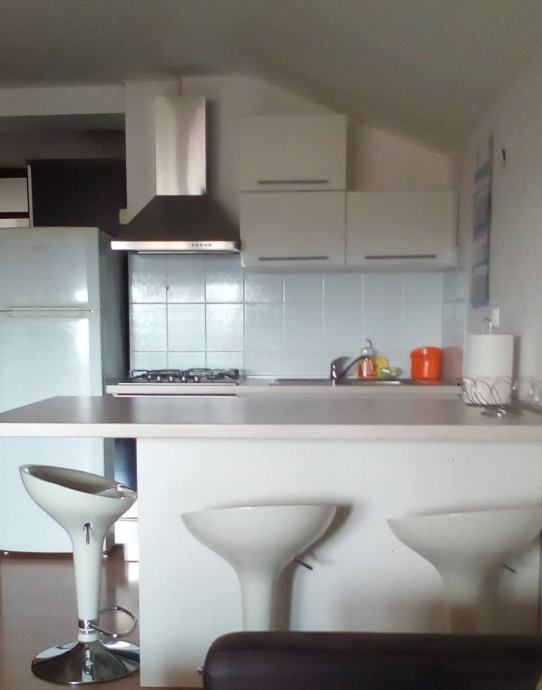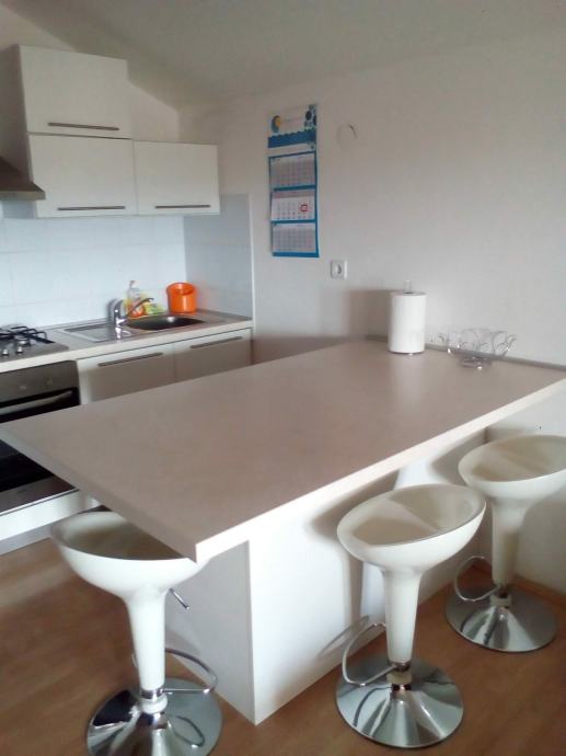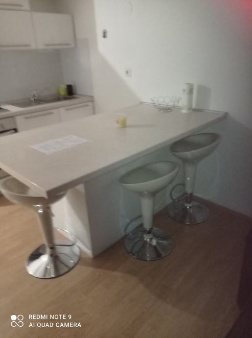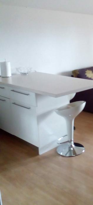 Prodajem set namještaja koji uključuje kuhinjske elemente s radnom plohom, napa, plinsko kuhalo i sudoper s armaturom. Uz to dolazi i otočni šank s dva moderna barska stola u bijeloj boji s metalnim nogama te trodijelni ormar bijele boje s ogledalom i ladicama.Francuski ležaj veličine 160/200. Namještaj je funkcionalan i u dobrom stanju za korištenje.
