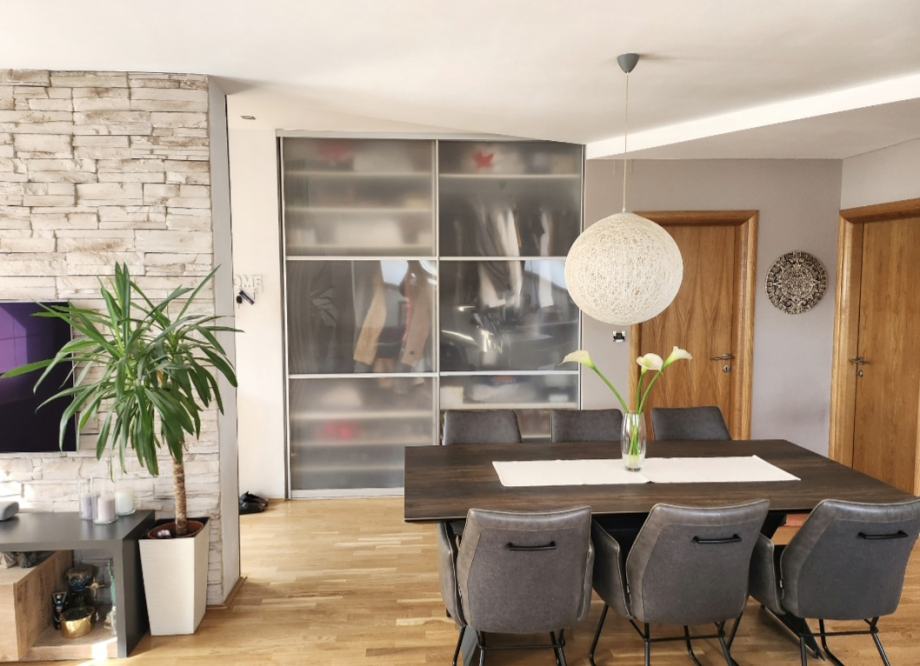 Prodaje se radi preseljenja stol dimenzije 200×100 (kupljen u Lesnini Dieter Knoll) masivan, noge crne mat metalne. Stolice gratis.
