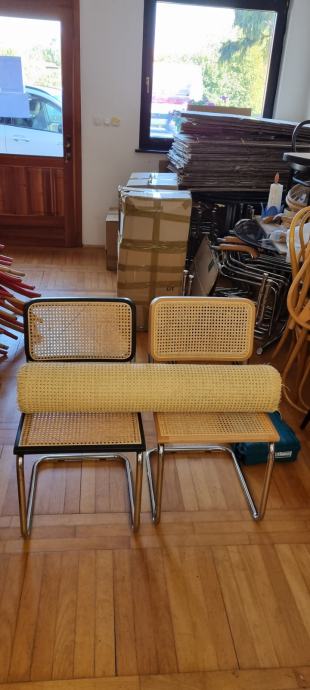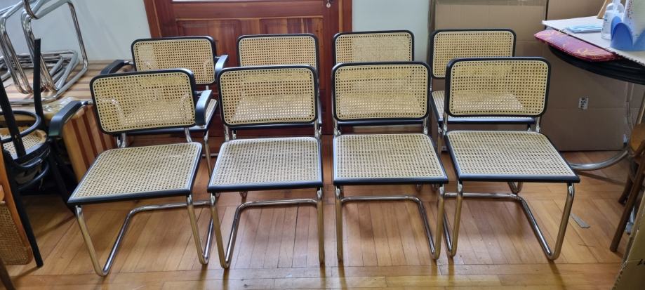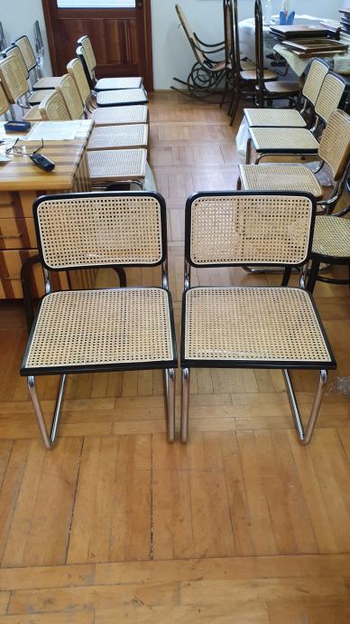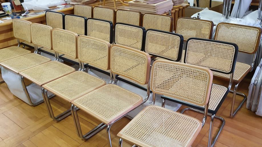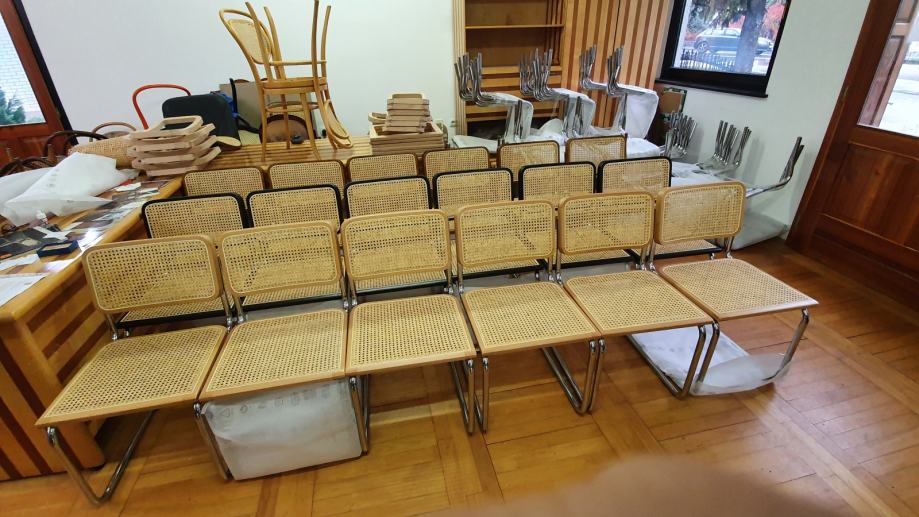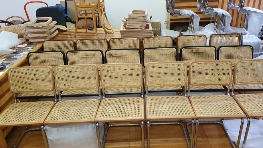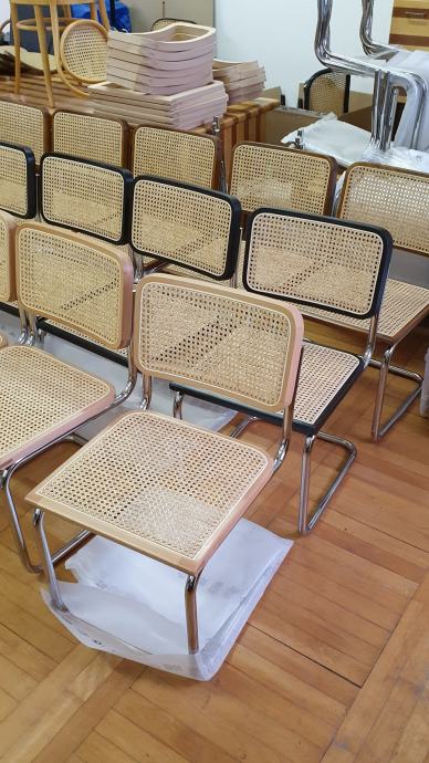 Prodajemo nove stolice Marcel Breuer u natur, orah ili crnoj izvedbi drvenih okvira. Akcijska cijena iznosi 225€ za 1 komad. Cijena za 1 komad identične stolice proizvodnje Thonet Njemačka je 1.250€ za stolicu bez naslona za ruke, a s naslonima za ruke cijena je 1.350€ za 1 komad. Kod Američke tvrtke Knoll cijena za 1 komad iznosi 930$. Otkupljujemo ili restauriramo Vaše Breuer ili Thonet stolce, ili uzimamo pod račun. U ponudi imamo i potpuno restaurirane Breuer stolice sa i bez naslona za ruke, starosti oko 40 godina.