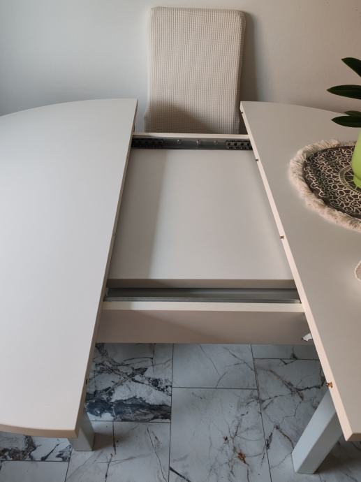 Stol je 110cm u promjeru, s tim da se može proširiti za dodatnih 40cm.