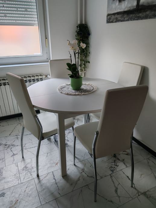 Prodajem bijeli okrugli stol (vrlo stabilan) i četiri stolice.