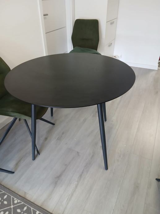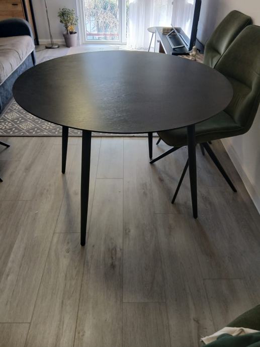 Prodajem crni okrugli stol, promjera 100 cm,sa crnim metalnim nogama, kupljen prije 2 mjeseca u Lesnini,koštao 139 eura, bez tragova korištenja...prodaje se jer ne odgovara u prostoru...cijena 70 eura