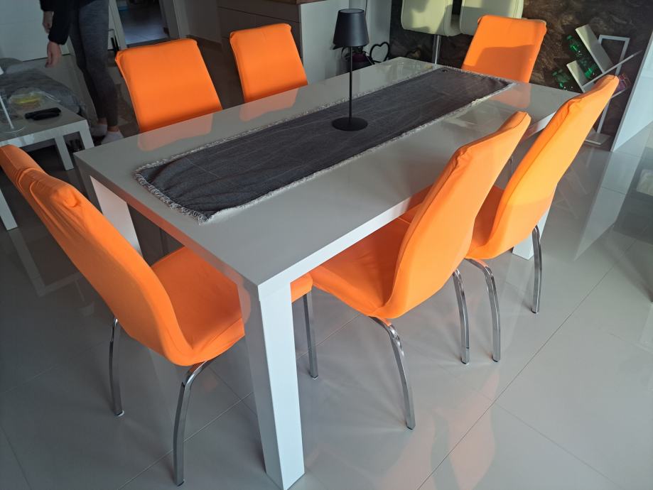 Prodajem dobro očuvan bijeli blagovaonski stol visokog sjaja.