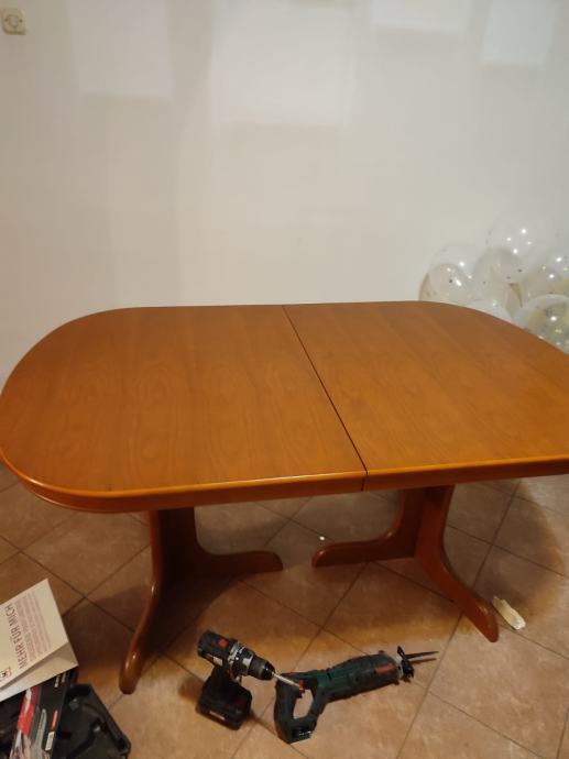 Prodajem blagovaonski stol na rasklapanje, puno drvo, kao nov. , i stolice. cijena 390 eur. Nazvati na broj 0992180729