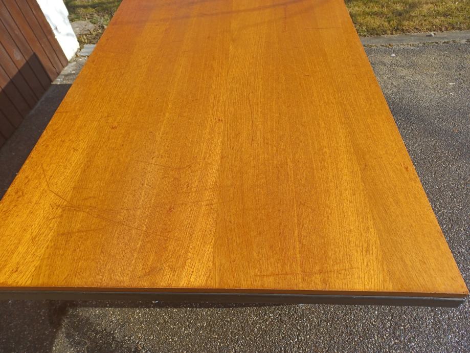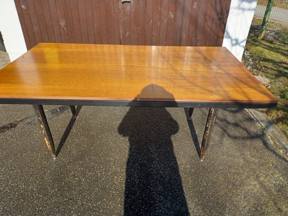 Prodajem dva drvena stola, čvrsta konstrukcija. Dimenzije prvog stola su 180 cm x 100 cm, visina 72 cm. Dimenzije drugog stola su 186 cm x 95 cm. Obrubi stolova presvučeni kožom, noge stolova imaju metalno pojačanje. Cijena jednog stola 60 EUR-A, NIJE FIKSNO.
