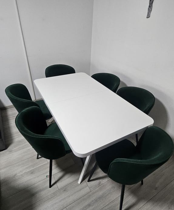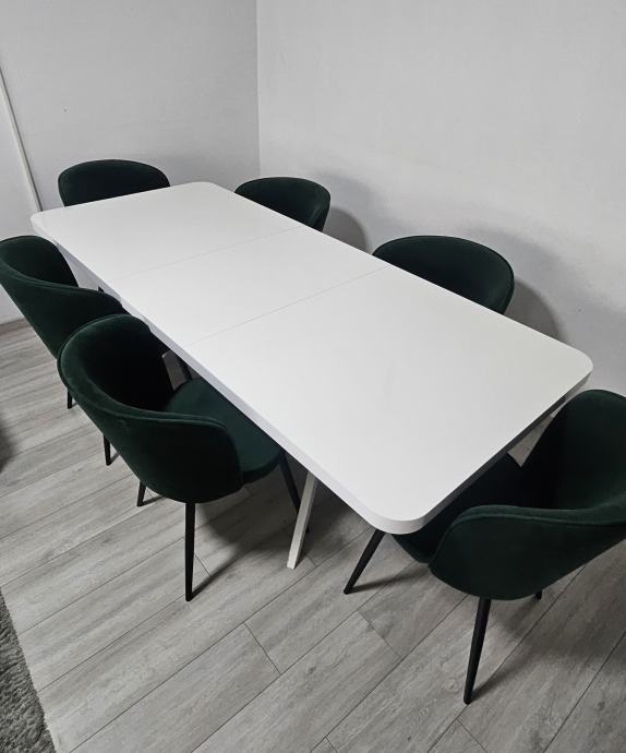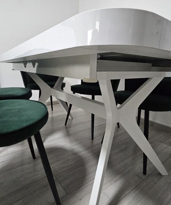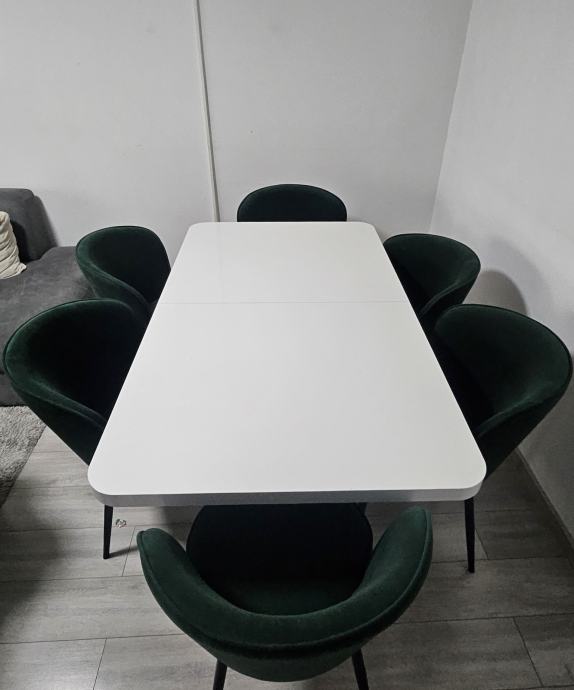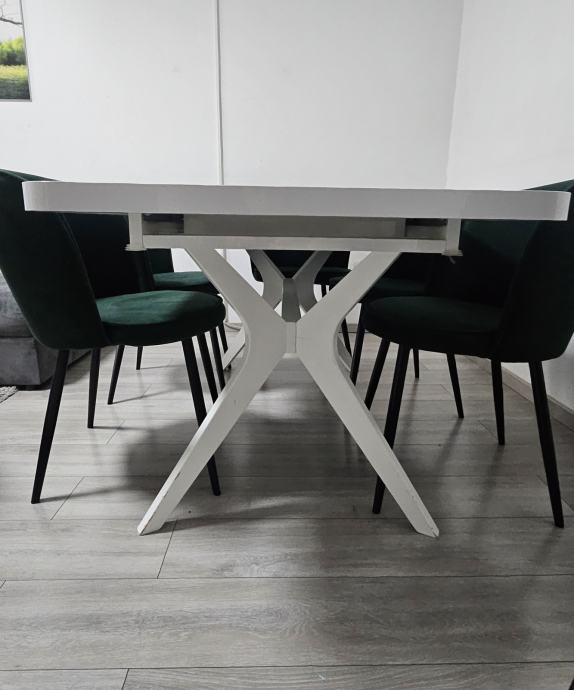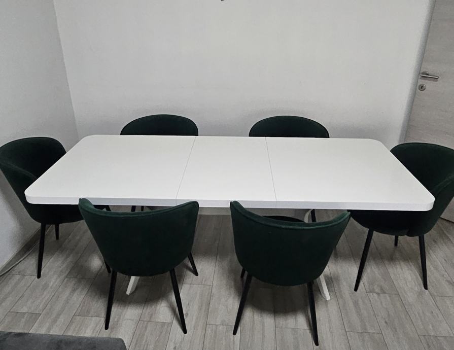 Prodajem rasklopljivi blagovaonski stol, dimenzije 160 cm x 90 cm, u rasklopljenom stanju 210 cm. Stanje 9/10 (zbog tragova korištenja).