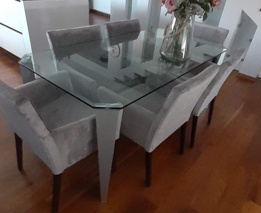 Prodajem stakleni stol 180x90,korišten ali jako dobrom stanju. Stol ima sive nogice.