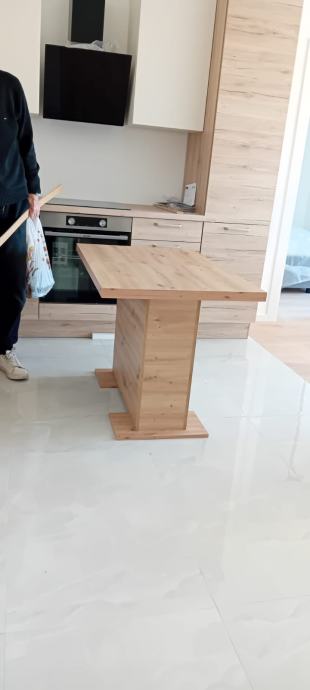 Prodajem novi stol za blagavaonicu tek kupljen i sastavljen (prevelik za prostor).Kupljen u Lesnine za stan koji jos nije useljen.Dimenzije stola 110/70 na razvlacenje.