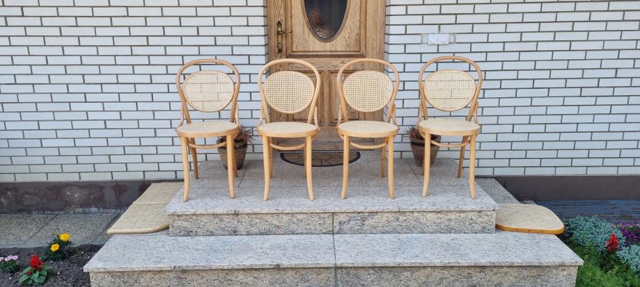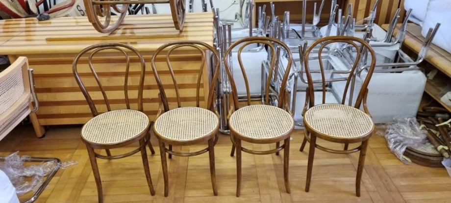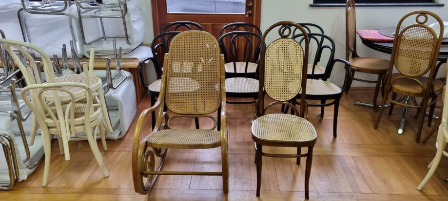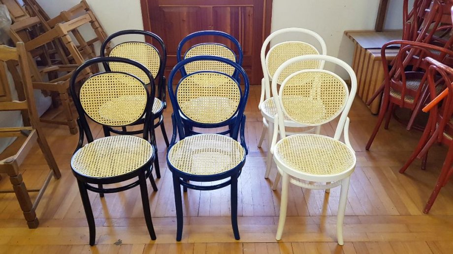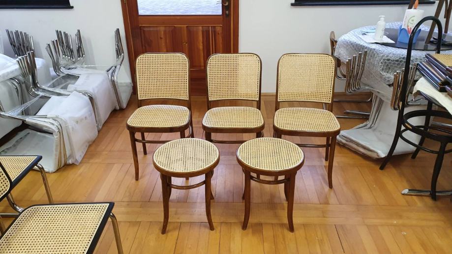 Prodajem stolice od savijenog bukovog drveta model Era Chair, dizajn Michael Thonet, sjedište pleteno prirodnom bambus trstikom. Otkupljujemo ili restauriramo Vaše stare Thonet ili Breuer stolce.