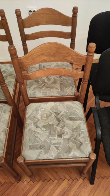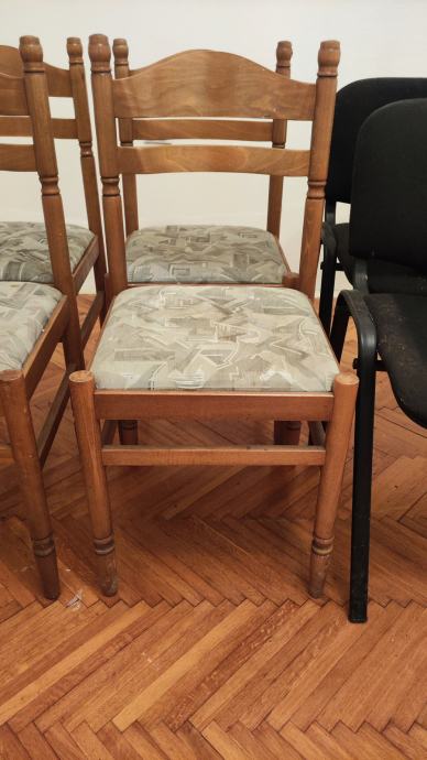 4 drvene stolice s tapeciranim sjedištem