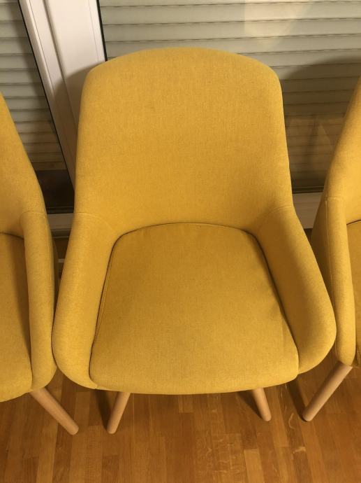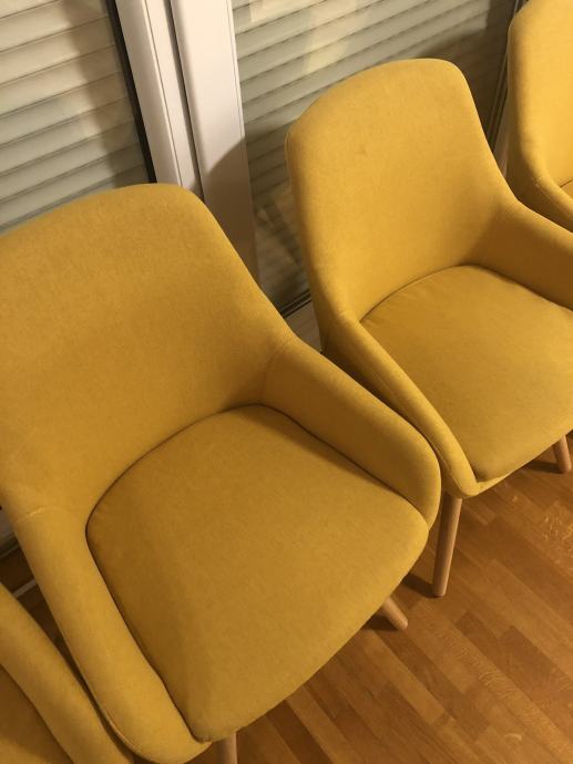 Prodajem četiri žute stolice:,.Stolice se prodaju isključivo zajedno. Stolice su jako malo korištene { kao nove}.kupljene u Chair4u