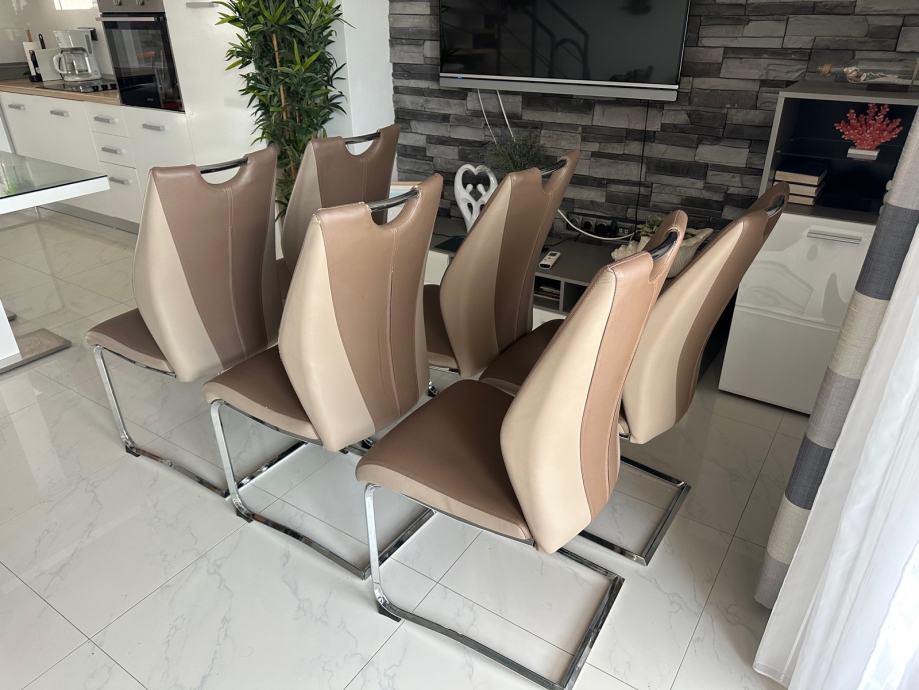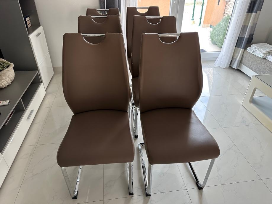 Prodajem navedene stolice 6 komada, izuzetno udobne, nove plaćene 120 eura po komadu, tri stolice su kao sta se vidi sitno oštećene.