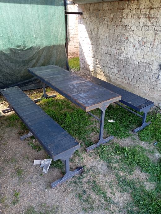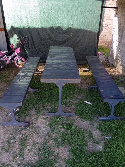 Prodajem vrtnu garnituru s čeličnom konstrukcijom, koja se sastoji od stola i dvije klupe. Konstrukcija je izrađena od čelika, a sjedala i ploča stola od drvenih dasaka. Garnitura je robusne i solidne izrade, prikladna za postavljanje na terasi, u vrtu ili dvorištu. Cijena 150 eura