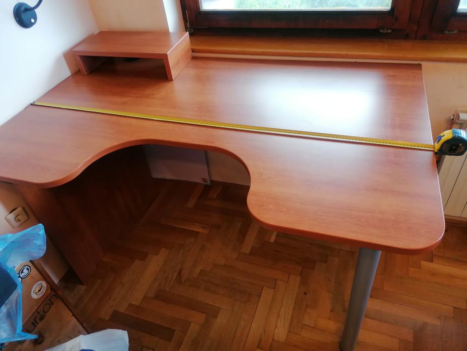 Prodajem radni stol rađen po mjeri. Za lijevi ugao, ali i ne mora biti na zidu.