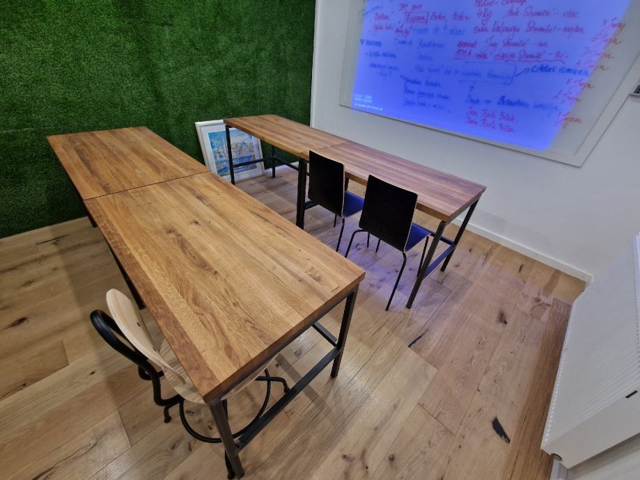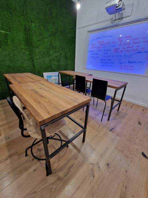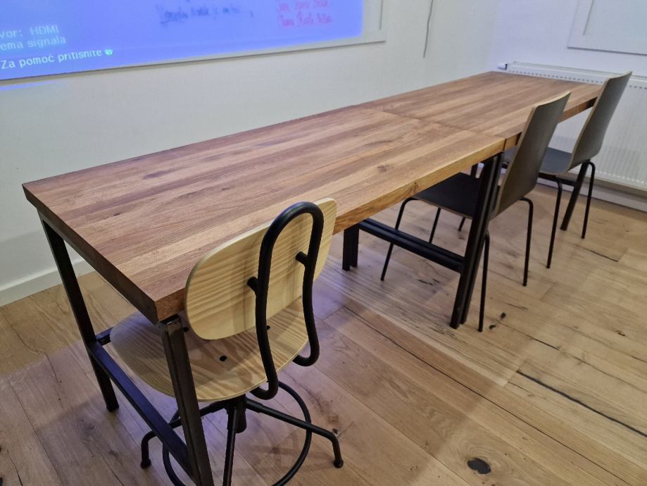Mogu poslužiti za co working urede, za konferencijsku salu ili pojednične moderne urede. Svaki stol je po mjerama za dvije osobe, dva učenika, dva radnika itd.