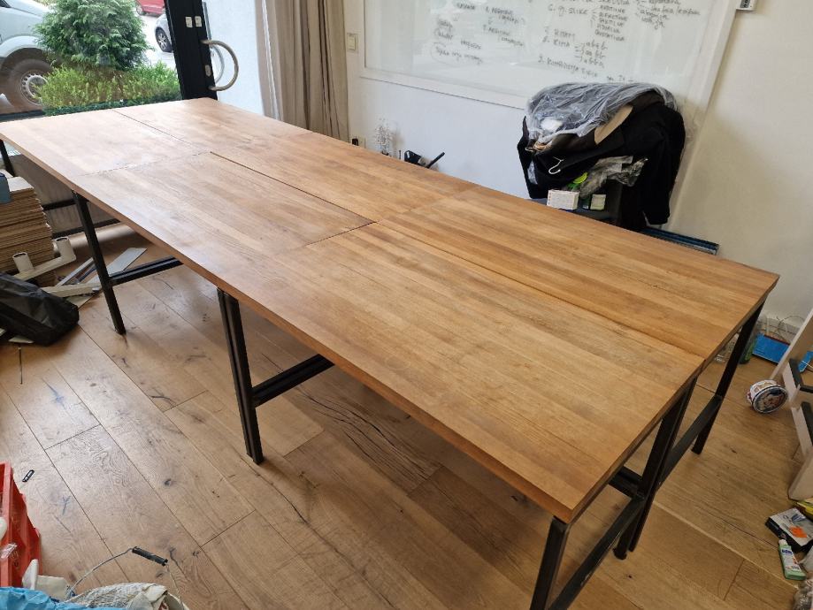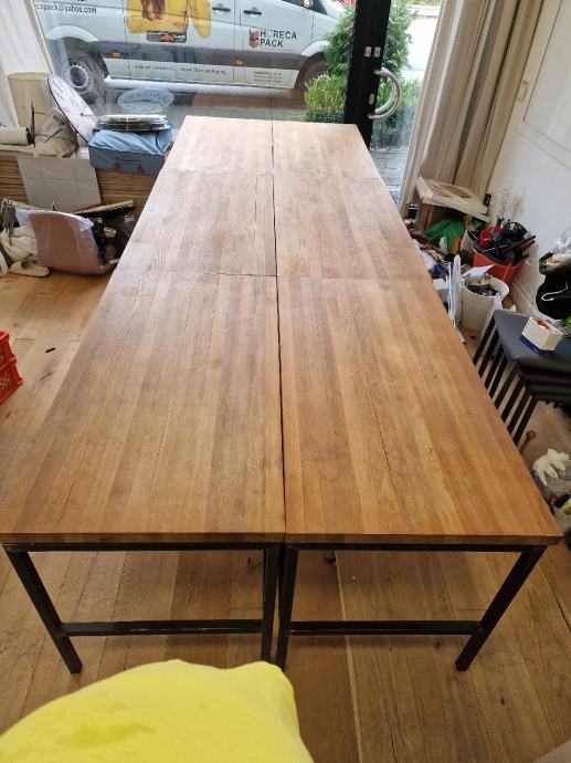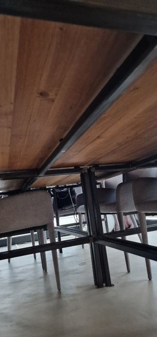 Stolovi su bez korišteni ali bez ostečenja, rađeni po narudžbi, teški i vrlo kvalitetni.