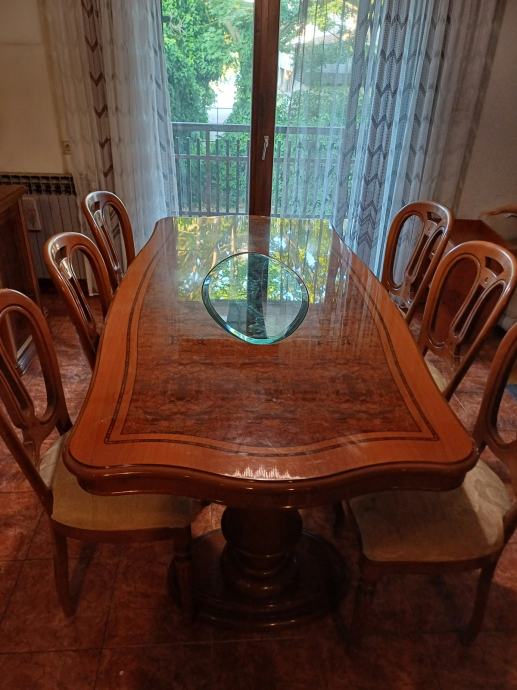 – veliki drveni stol (lakirani, stakleni oval),