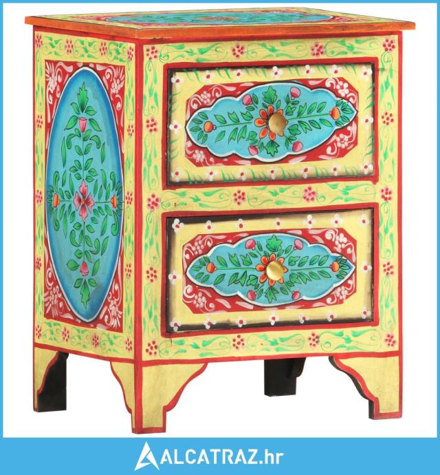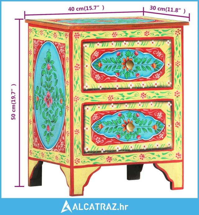 Ručno obojeni noćni ormarić 40 x 30 x 50 cm masivno drvo manga - NOVO