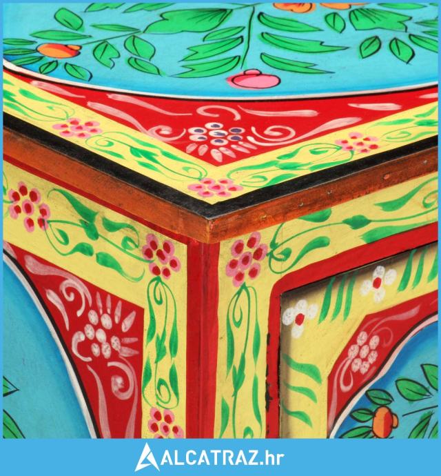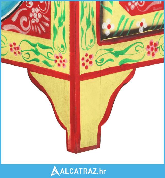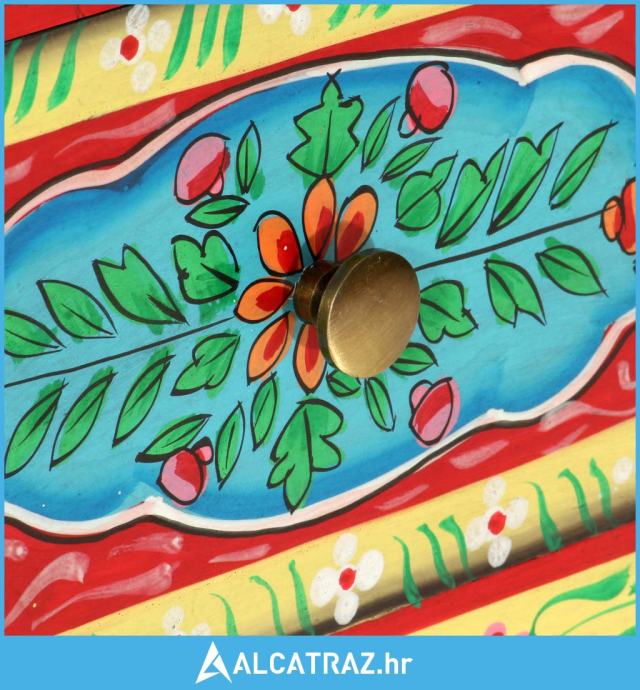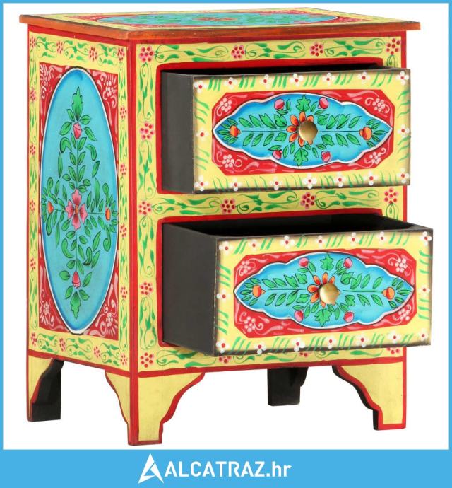 Ovaj prekrasni drveni noćni ormarić, koji ima raskošne, rukom naslikane ukrase, bit će privlačan dodatak vašoj spavaćoj sobi zahvaljujući svom šarenom dizajnu.