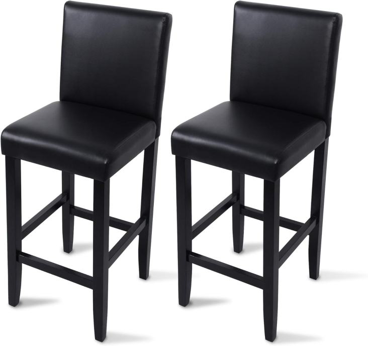 Set od 2 barske stolice s naslonom, tapecirano sjedalo od umjetne kože