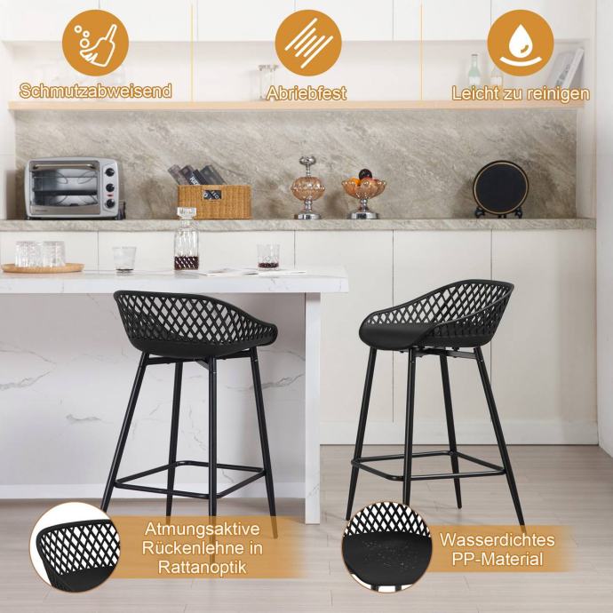 Ovaj set barstolica nudi udobno sjedalo zahvaljujući posebnom dizajnu koji čini sjedalo prostranijim, a naslon s izdubljenim uzorkom pruža podršku donjem dijelu leđa i omogućuje prozračnost.