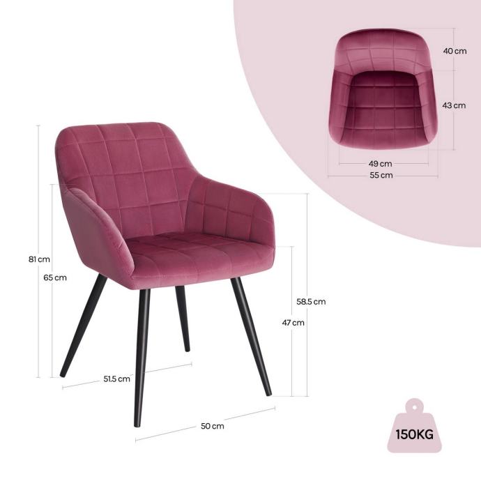 Unutarnja metalna konstrukcija i križno postavljene metalne noge osiguravaju čvrstoću i dugotrajnost, dok kvalitetan šav i postojani materijali sprječavaju deformacije. Zahvaljujući elegantnom i jednostavnom dizajnu, stolice se odlično uklapaju u blagovaonicu, dnevni boravak, spavaću sobu, ured ili prostor za šminkanje.