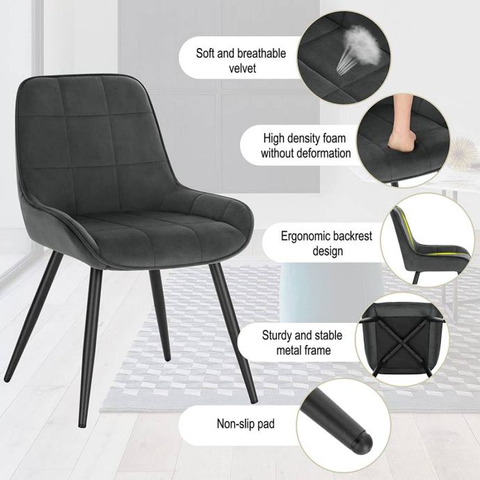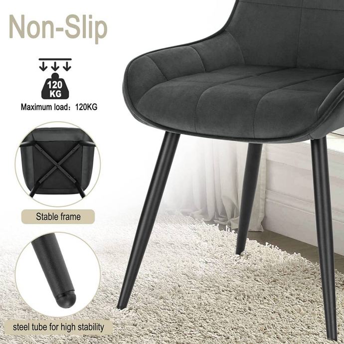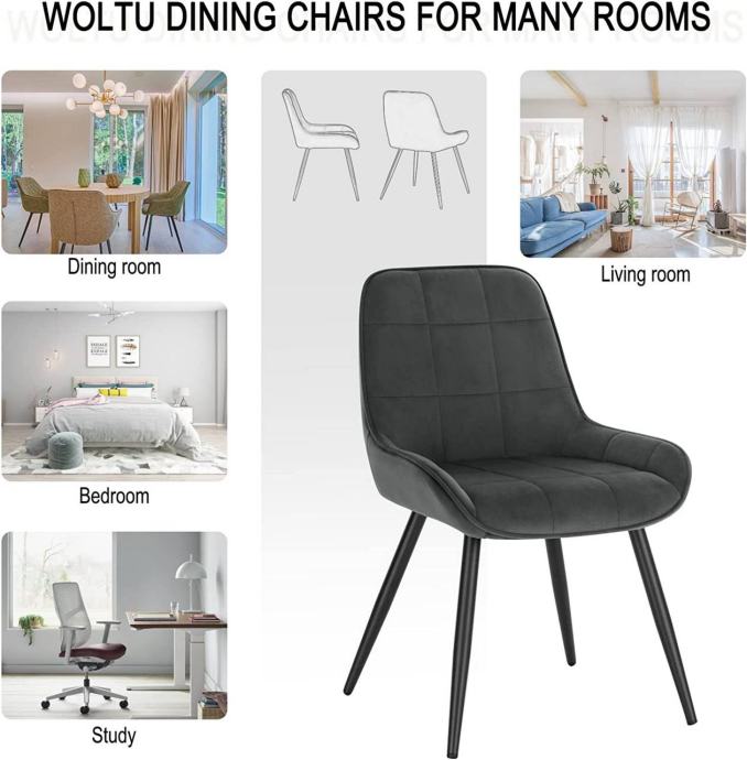Stil i praktičnost: Stolice su tapecirane mekim, prozračnim i otporim baršunom s karo uzorkom, što ih čini elegantnim i funkcionalnim izborom za blagovaonicu, dnevni boravak, prostor za odmor, spavaću sobu ili kućni ured.