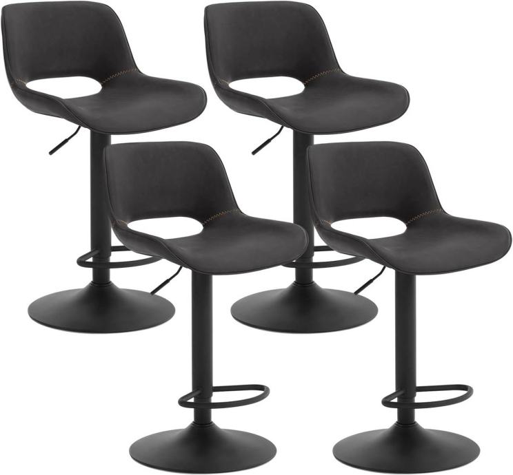 Set od četiri barske stolice savršen je za kuhinjske otoke, barove, bistroe i kućne barove. Sjedalo i naslon presvučeni su vodootpornom i otpornom na habanje vintage umjetnom kožom, što olakšava čišćenje i održavanje – prašina i mrlje se brišu vlažnom krpom.