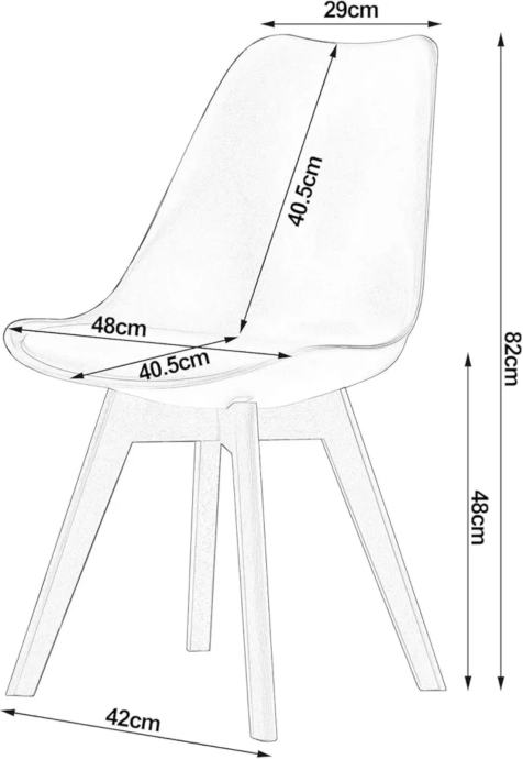 INSTALACIJA JE JEDNOSTAVNA: Samo trebate pričvrstiti noge vijcima. Ponudit će se ilustrirane upute i numerirani dijelovi. Dimenzije drvene stolice - Ukupna visina: 82 cm; visina sjedala: 46 cm; površina sjedala (ŠxV): 48x42 cm; visina naslona: 40 cm