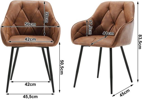 Set 4 stolice za blagovanje, ergonomske, vintage koža, metalne noge