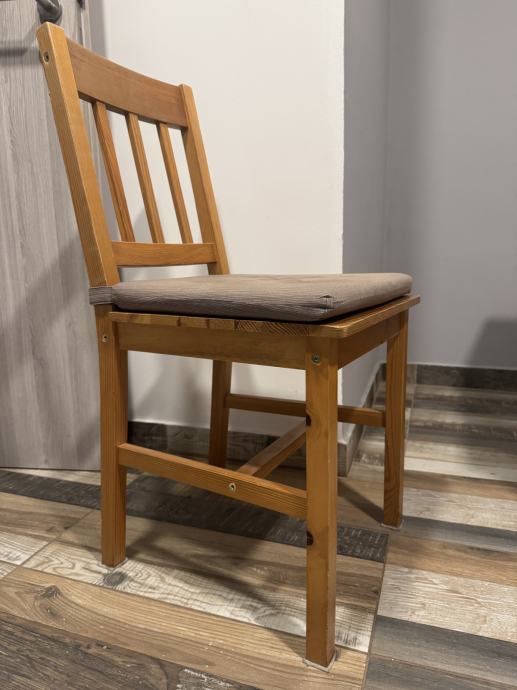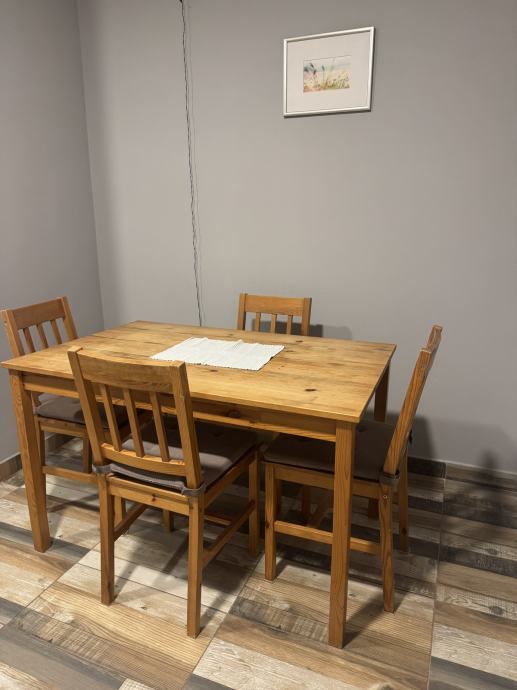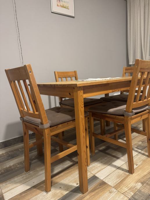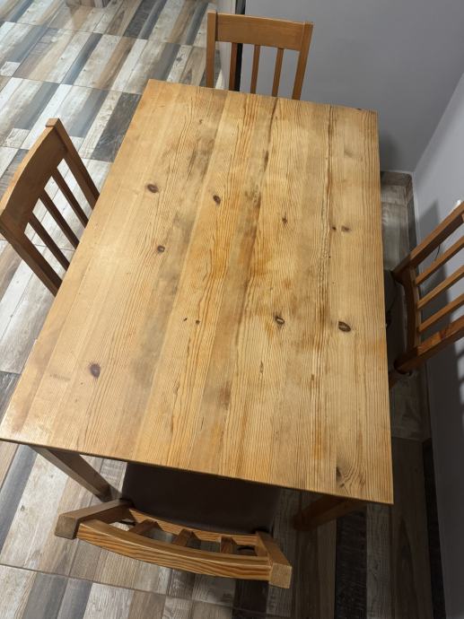 Prodajem blagovaonski set koji se sastoji od stola i 4 stolice boje drveta.