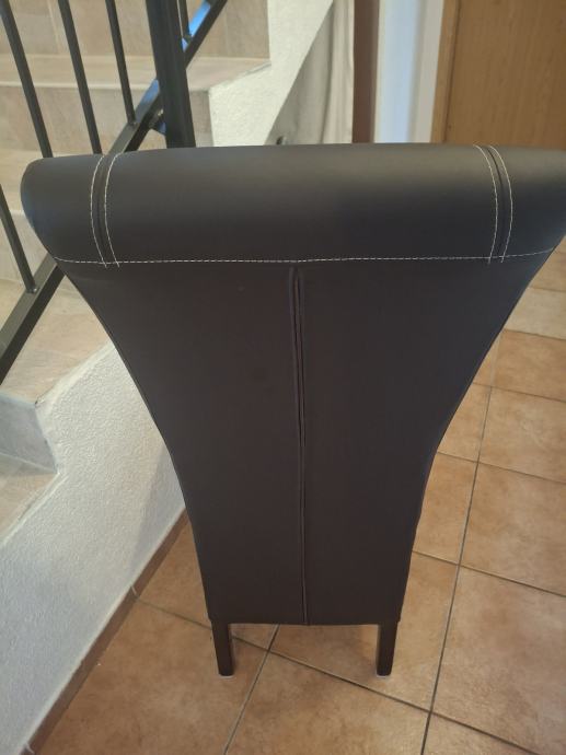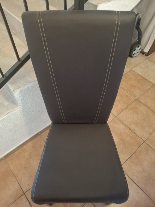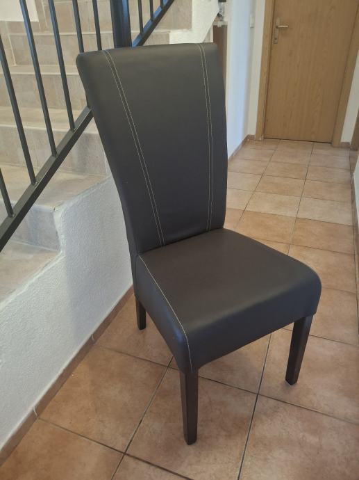 Prodajem set od 6 jednakih tapeciranih blagovaonskih stolaca. Stolci su tamno smeđe prema crnoj boje. Vrlo su kratko korišteni, očuvani su s minimalnim tragovima korištenja.
