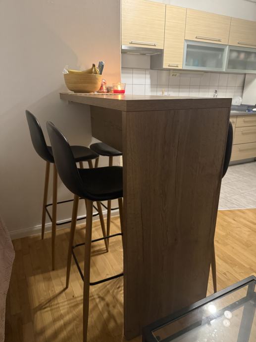 stol sa 4 stolice, izrađen od punog drveta, hrast. Stol se ušarafi u zid.