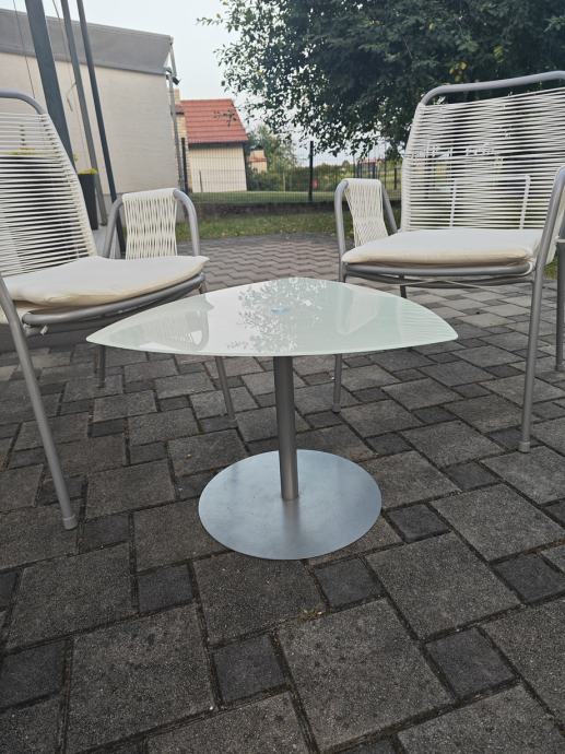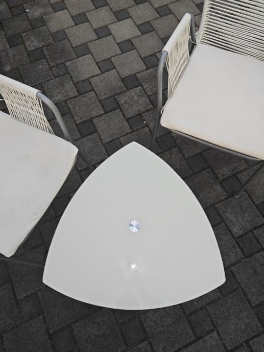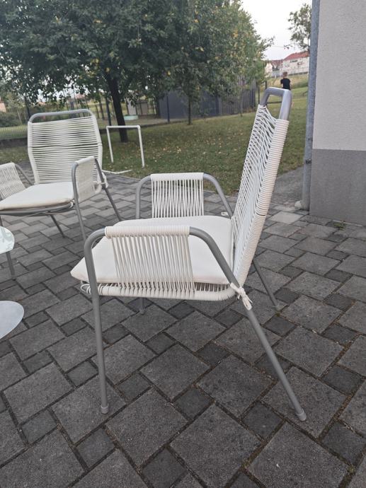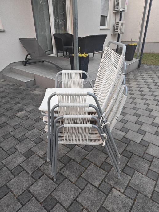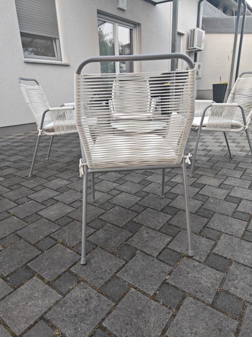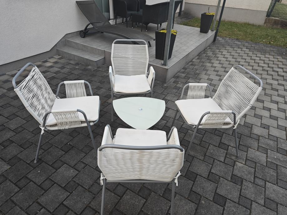Set za terasu: 4 stolice i mali stolić.