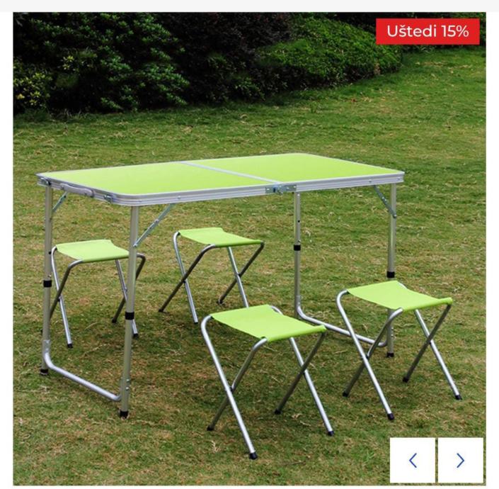 Komplet stola i stolica pruža sve što vam je potrebno za udobno uživanje na otvorenom – lako prenosiv, brzo sklopiv i spreman za korištenje gdje god vam zatreba.