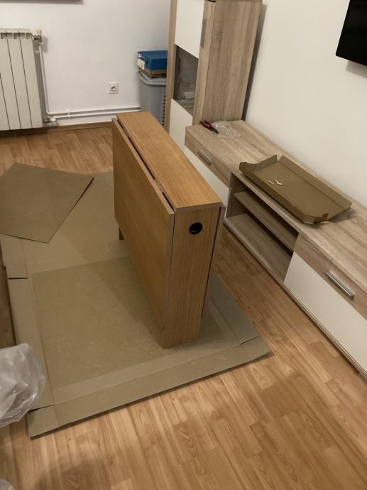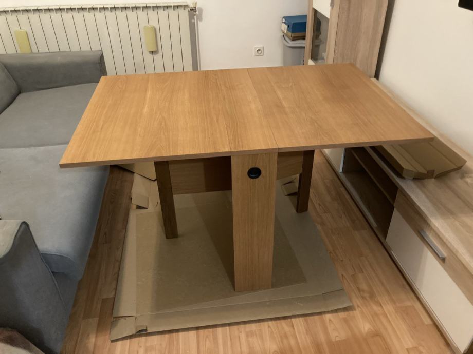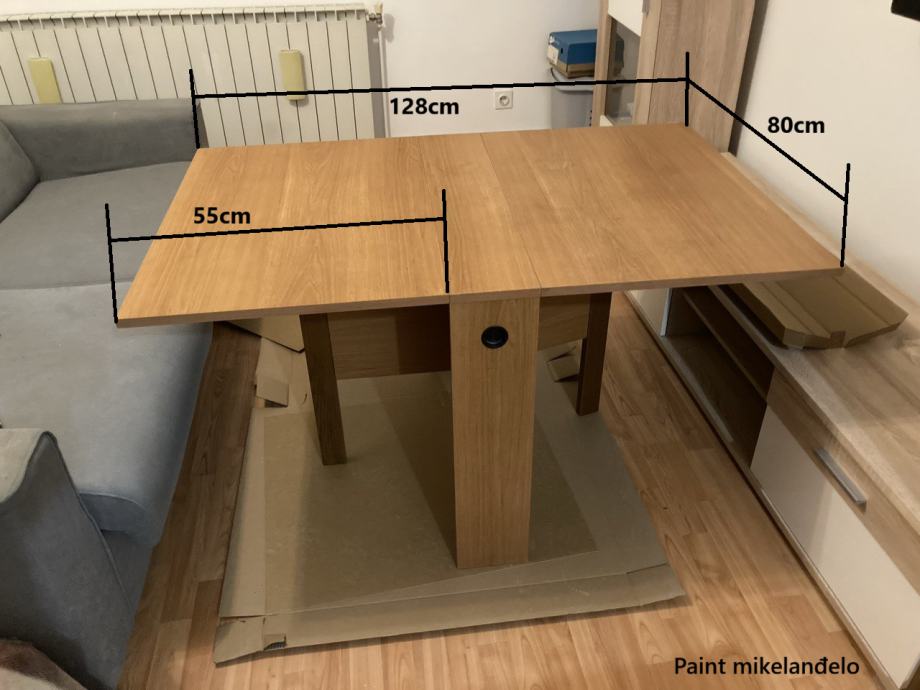 Prodaje se sklopivi stol. Dimenzija max(128)x80. Sklopive stranice su duge 55cm. Korišten, ali u dobrom stanju.
