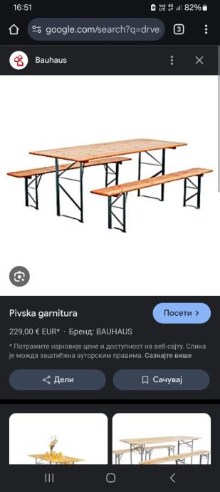 Na stanju 7 klupa i dva stola,plaćen komplet dvije klupe i stol 230 eura u bauhaus 091 914 8444